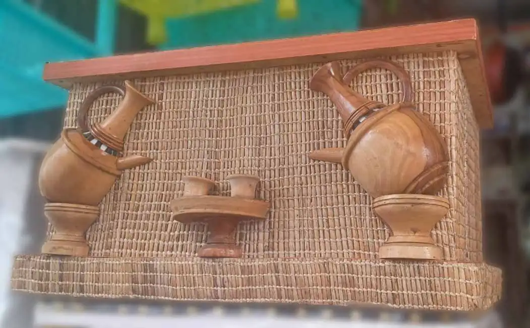 Complete Storage Solution – Holds cups (Sini), Jebena, incense burner, and other buna accessories.