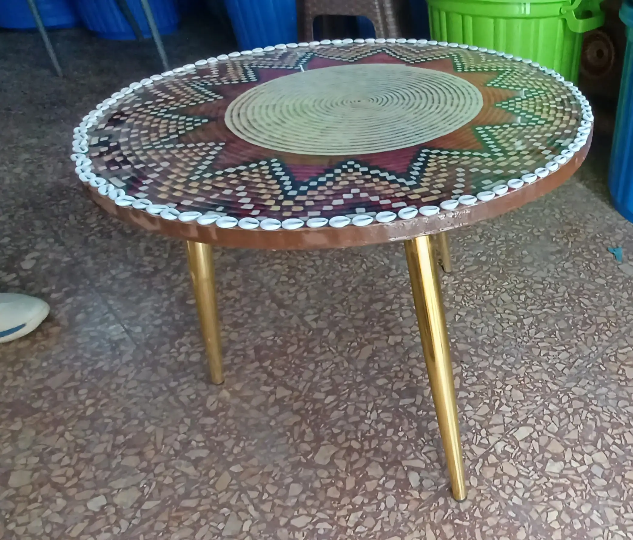 የሰፌድ ዲዛይን ያለው በEpoxy የተለበጠ ለቡና ቢዝነስ የሚሆን ረከቦት።