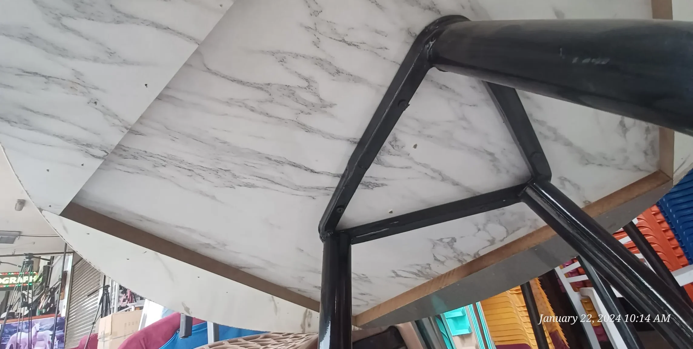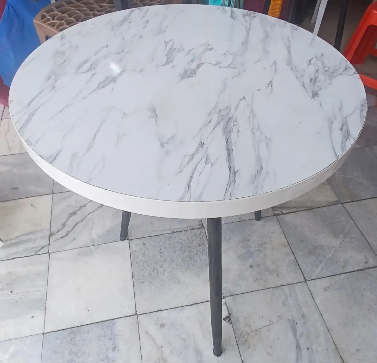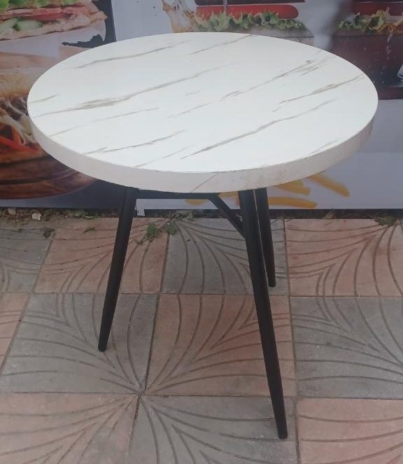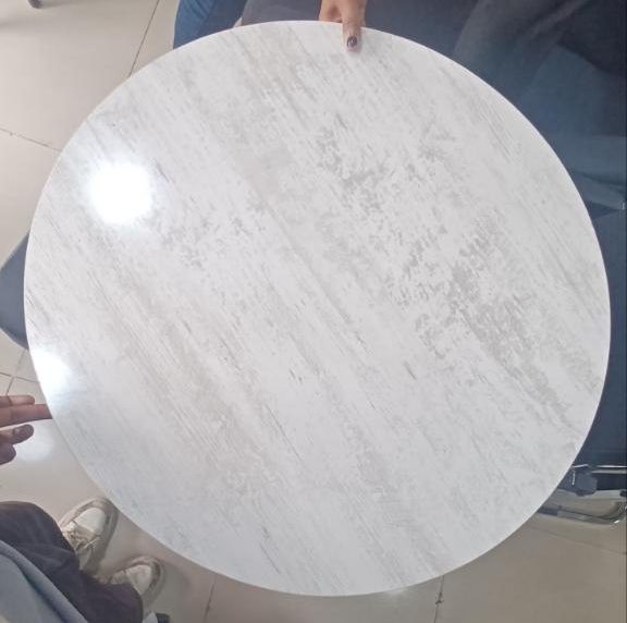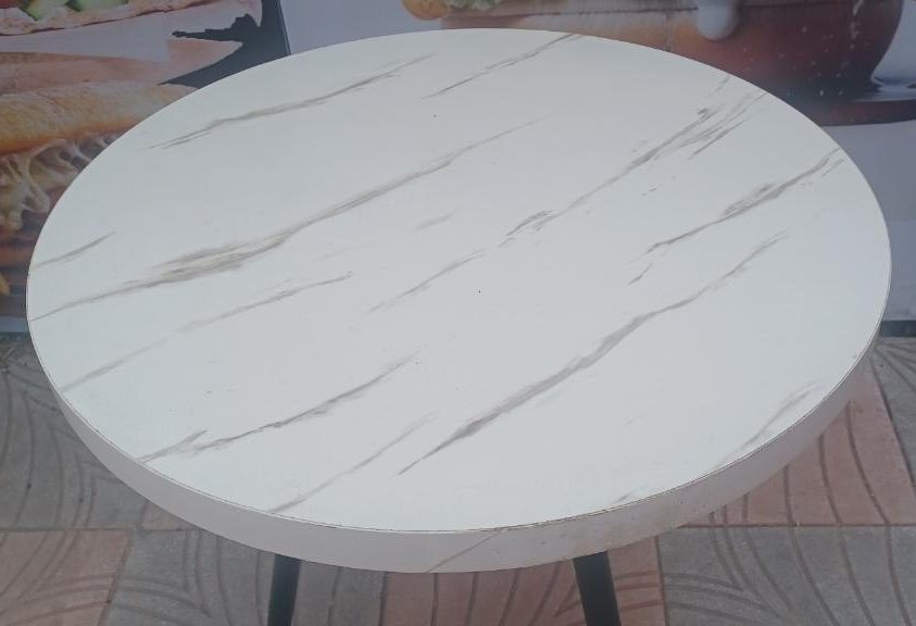The White Patterned Circular Tri-leg MDF Table is a durable and elegant choice for cafés, restaurants, or personal use. Designed with high-quality MDF material and supported by sturdy stainless-steel tri-legs, it combines both style and stability.